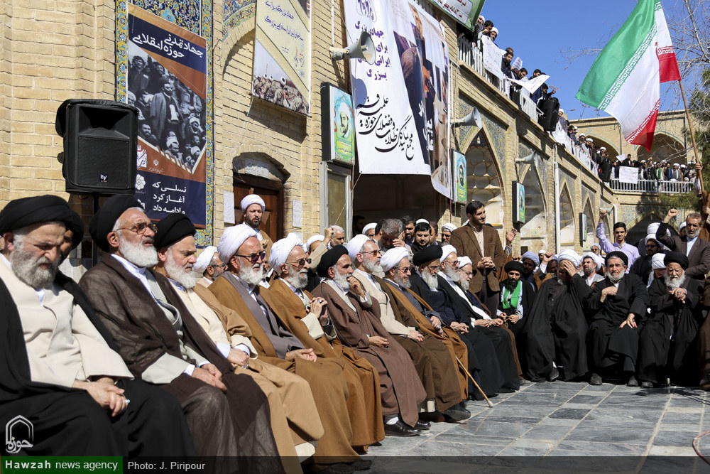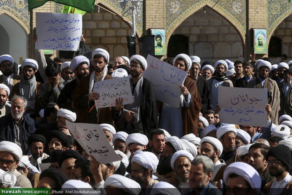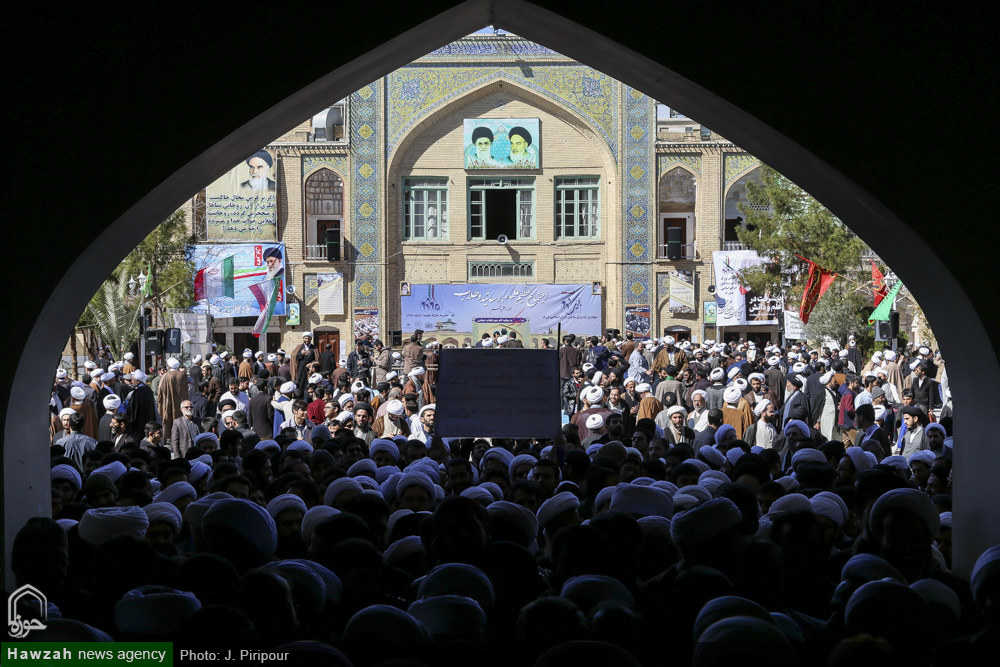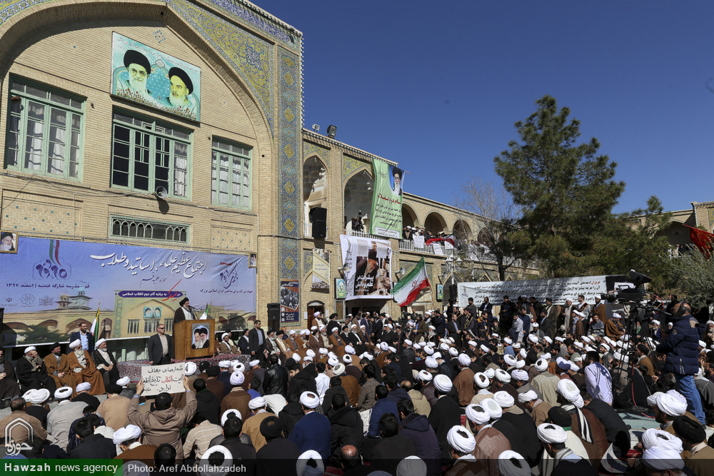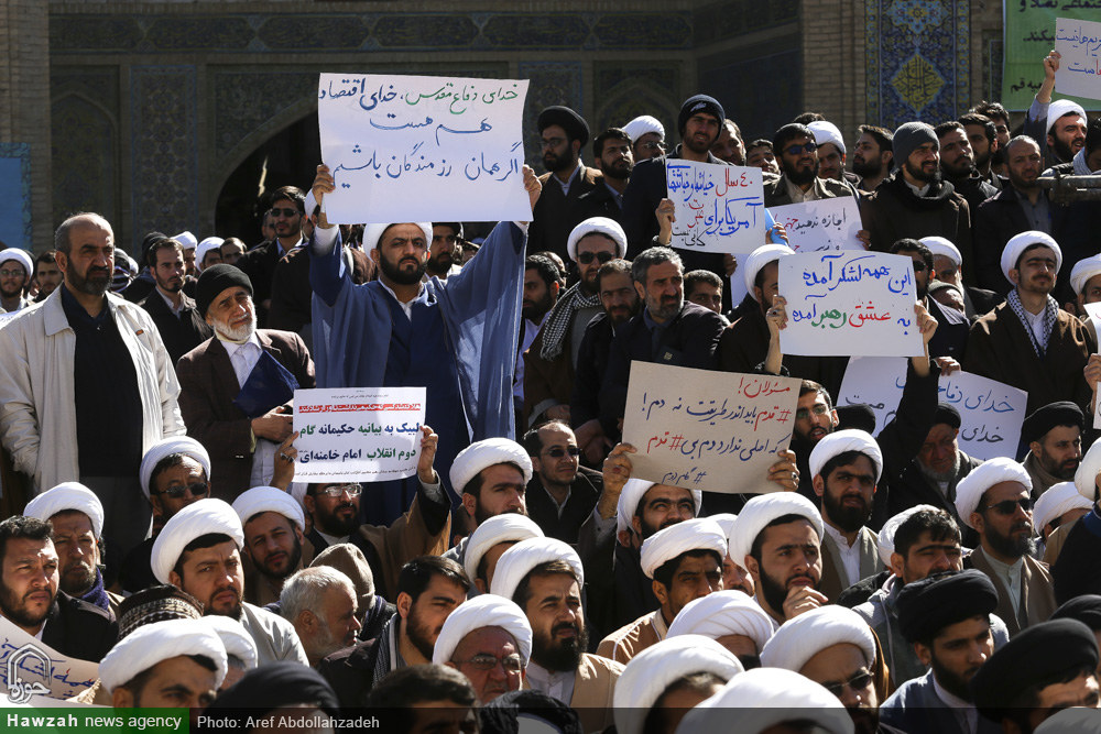 شبکه اجتهاد: اجتماع عظیم علما، اساتید و طلاب حوزه علمیه قم در لبیک به بیانیه گام دوم انقلاب اسلامی با حضور خیل کثیری از طلاب، روحانیون و فضلای حوزه علمیه قم در مدرسه فیضیه برگزار شد. آیتالله سید احمد خاتمی در سخنانی در این اجتماع بیان کرد: در این گام مقدس بزرگان، اساتید، مراجع عظام تقلید و اعاظم پیشگامند و آیات عظام مکارم شیرازی و نوری همدانی در رابطه با بیانیه دوم انقلاب واکنش مثبتی نشان دادند که بدین معناست که دشمنان آرزوی جدایی حوزه را از انقلاب و ولایت به گور خواهند برد. زمانی که رهبر انقلاب این پیام را صادر کردند، جامعه مدرسین کمیتهای تشکیل داد تا مشخص شود که حوزه چه کمکی میتواند به تحقق این بیانیه انجام دهد. ما حوزویان یک مجموعه هستیم که رهبر انقلاب در رأس این مجموعه قرار دارند؛ مراجع عظام تقلید جمعی را برای شورای عالی منصوب کردهاند و من به عنوان یکی از اعضای این شورا شهادت میدهم که همه اعضا تضمین کردیم که یک ریالی بابت این کار نگیریم و تمام دغدغه بر اجرایی شدن آرمانهای انقلاب است.