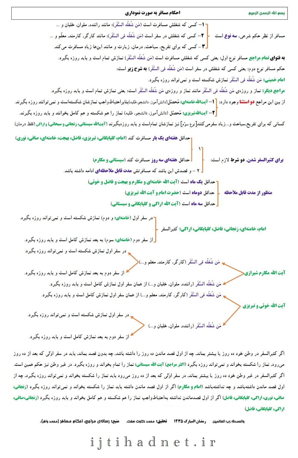 شبکه اجتهاد: محمد ذکاوت صفت در تحقیقی به جمع آوری احکام مسافر مطابق با نظر مراجع عظام تقلید نموده است که نمودار این احکام تقدیم نگاه شما خواهد شد.