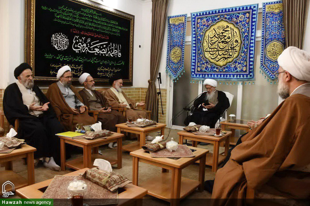 این مرجع تقلید در پایان سخنان خود به وظیفه خطیر مدیران حوزهها اشاره کرد و ابراز داشت: دو مطلب مهم است: یکی استقلال حوزه. حوزه باید فقط فانی در امام زمان علیه السلام باشد، و دوم ، احیاء امر آل محمد علیهم السلام به تفقه و انذار. خداوند خطاب به موسی فرمود: اگر دو کار را انجام دهی برتر و والاتر از صد سال صیام ایام و قیام لیالی است. موسی با تعجب پرسید: این کار چیست؟ خطاب آمد یکی رد آبق و دیگری ارشاد ضال. رد آبق ، توبه دادن گنهکار و ارشاد ضال ، هدایت به امام زمان است.