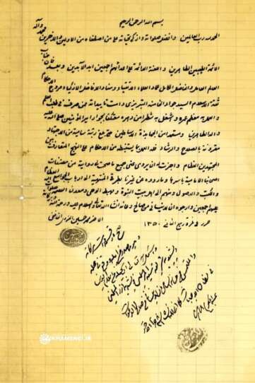 آیات عبدالکریم حائری یزدی و بروجردی و سیدمحمدتقی خوانساری در حاشیه این اجازه نامه را تایید کرده اند