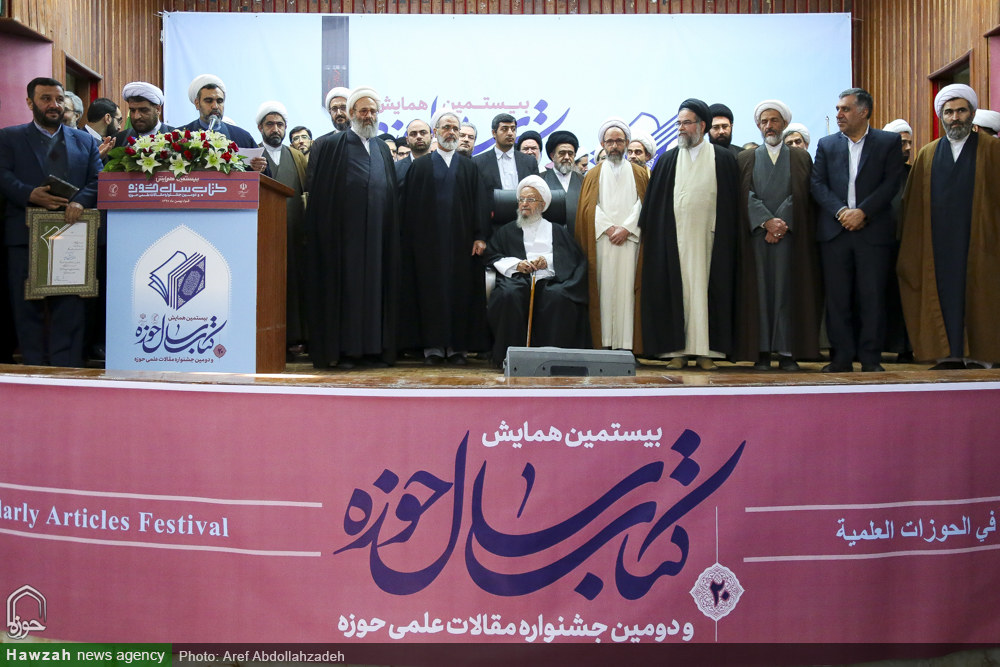 شبکه اجتهاد: بیستمین همایش کتاب سال حوزه و دومین جشنواره مقالات علمی حوزه با حضور آیتالله مکارم شیرازی، علما، اساتید، فضلا و محققان حوزوی و با معرفی برترینها و تجلیل از مرحوم آیتالله هاشمی شاهرودی و تقدیر از آیتالله سید محمدمهدی موسوی خلخالی به پاس سالها مجاهدت علمی، برگزار شد.