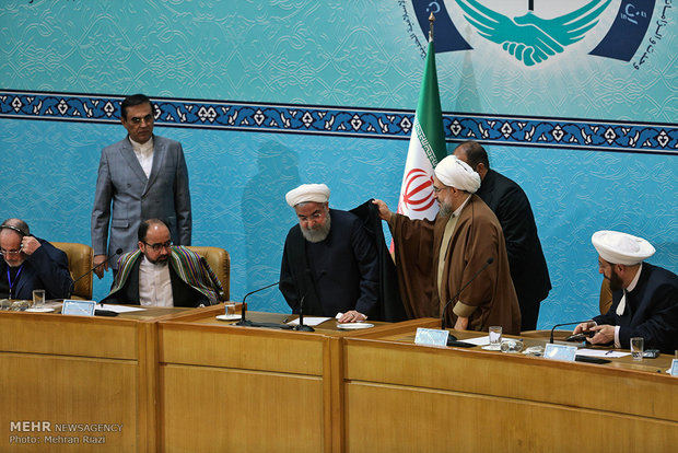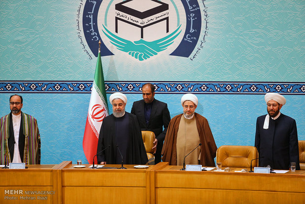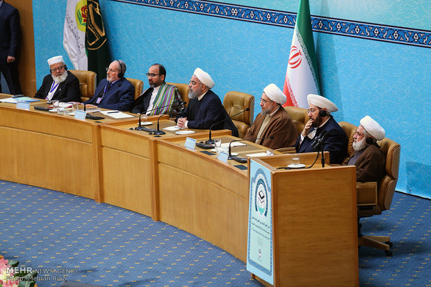 تصاویری از مراسم افتتاحیه سی و یکمین کنفرانس وحدت اسلامی 1396-09-15 شبکه اجتهاد: مراسم افتتاحیه سی و یکمین کنفرانس وحدت اسلامی صبح سه شنبه با حضور حجتالاسلام والمسلمین حسن روحانی رئیس جمهور برگزار شد.