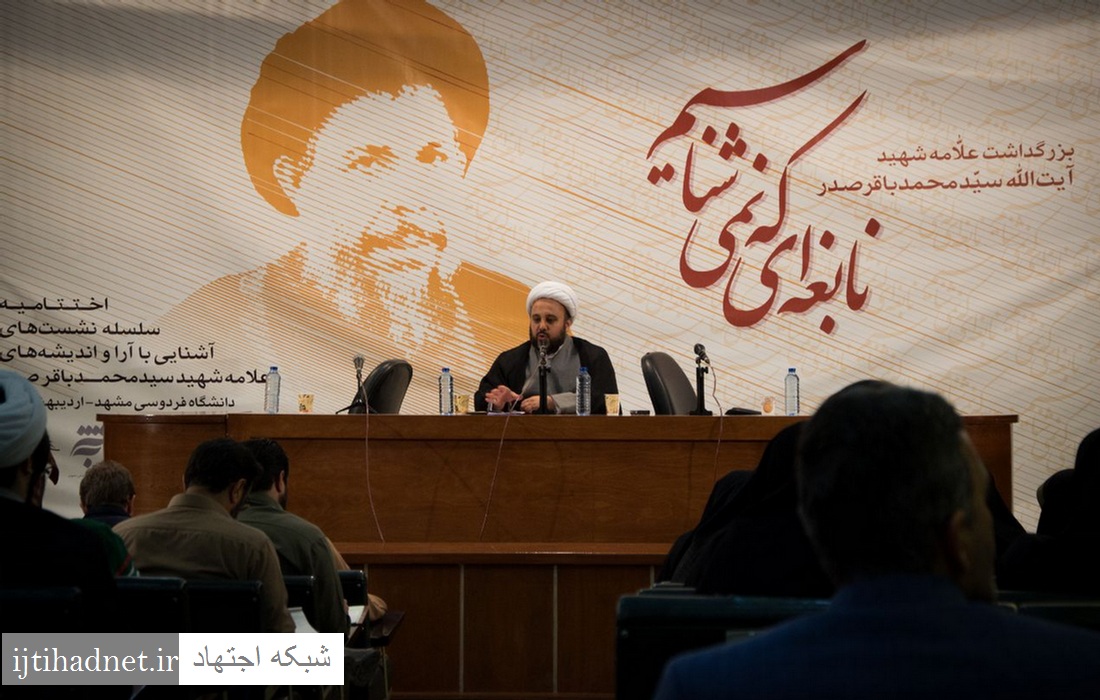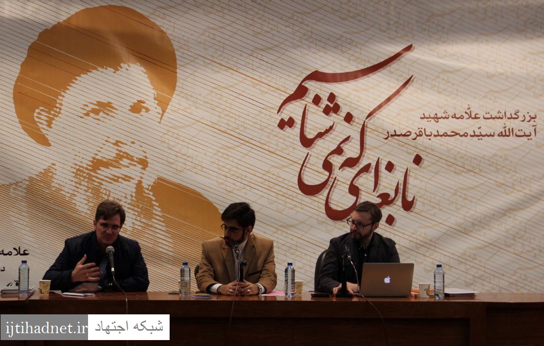شبکه اجتهاد: مراسم اختتامیه سلسله نشستهای آشنایی با آرا و اندیشههای علامه شهید سید محمدباقر صدر، با عنوان «نابغهای که نمیشناسیم» با سخنرانی حجتالاسلام مجتبی الهی خراسانی (استاد خارج فقه و اصول حوزه علمیه مشهد و رئیس میز توسعه و توانمندسازی علوم اسلامی دفتر تبلیغات اسلامی حوزه علمیه قم)، دکتر رافائل مائوریلو (شرقشناس و صدرپژوه ایتالیایی) و دکتر ژولین پلیسیه (اقتصاددان و صدرپژوه فرانسوی و مترجم شماری از آثار شهید صدر به زبان فرانسوی) و دکتر زهرا حائری (از شاگردان شهید بنتالهدی صدر)، ۲۴ اردیبهشتماه ۹۷ با حضور اساتید، فضلای حوزه علمیه، دانشجویان و دیگر علاقهمندان در سالن همایش دانشکده الهیات دانشگاه فردوسی مشهد برگزار شد. در این همایش، از جدیدترین ترجمه آثار شهید صدر چون فدک در تاریخ، پژوهشی درباره ولایت و پژوهشی درباره امام مهدی علیهالسلام که به قلم حجتالاسلام دکتر ابوالقاسم حسینی (ژرفا) به فارسی ترجمه شدهاند، با حضور حجتالاسلام محمدرضا زائری و سخنرانان همایش و دیگر مهمانان رونمایی شد.