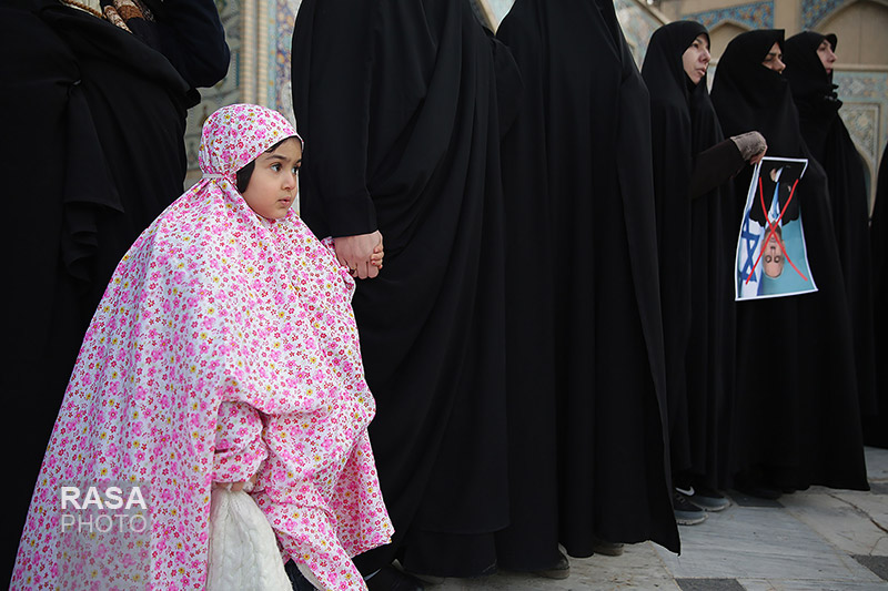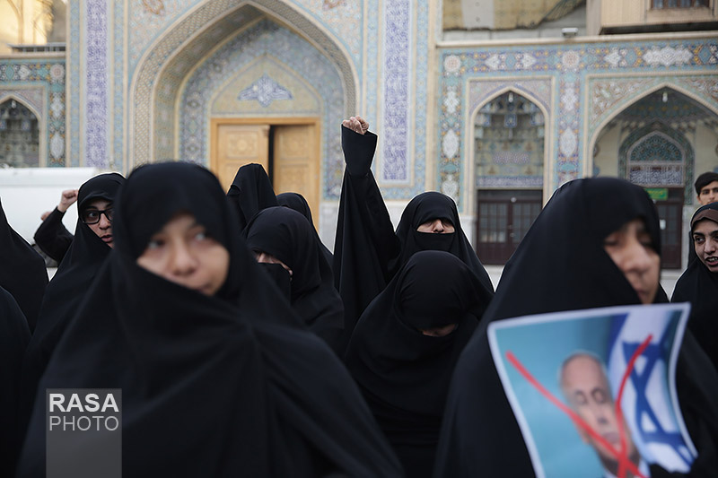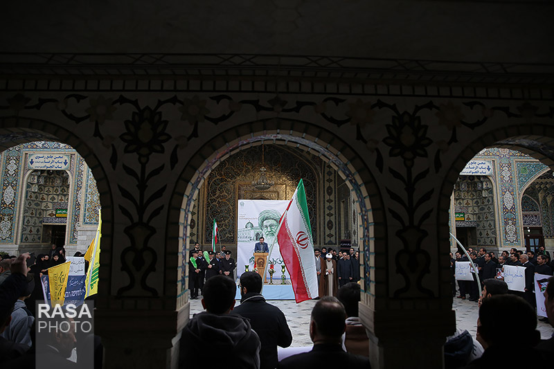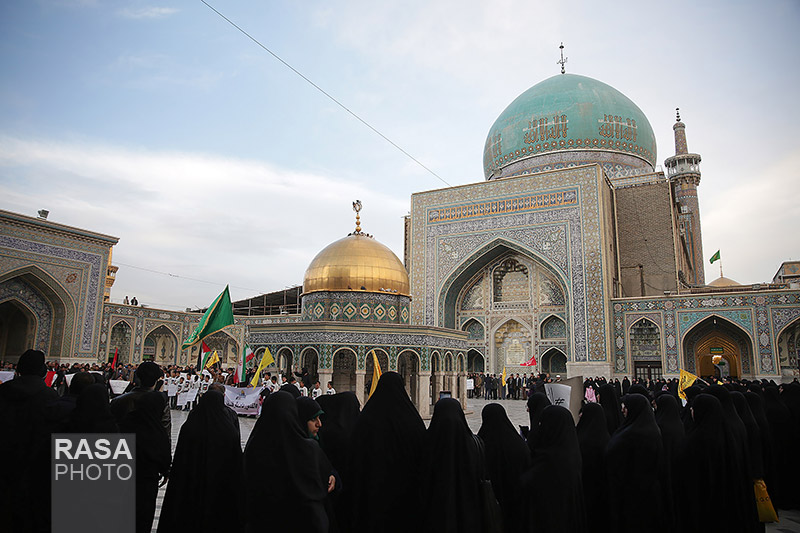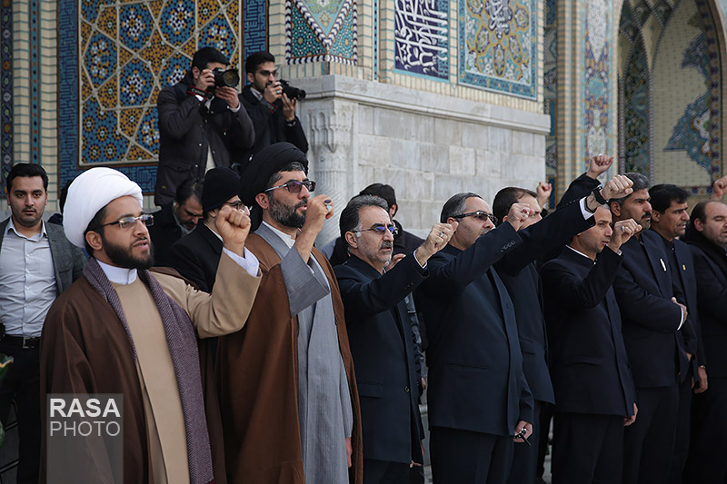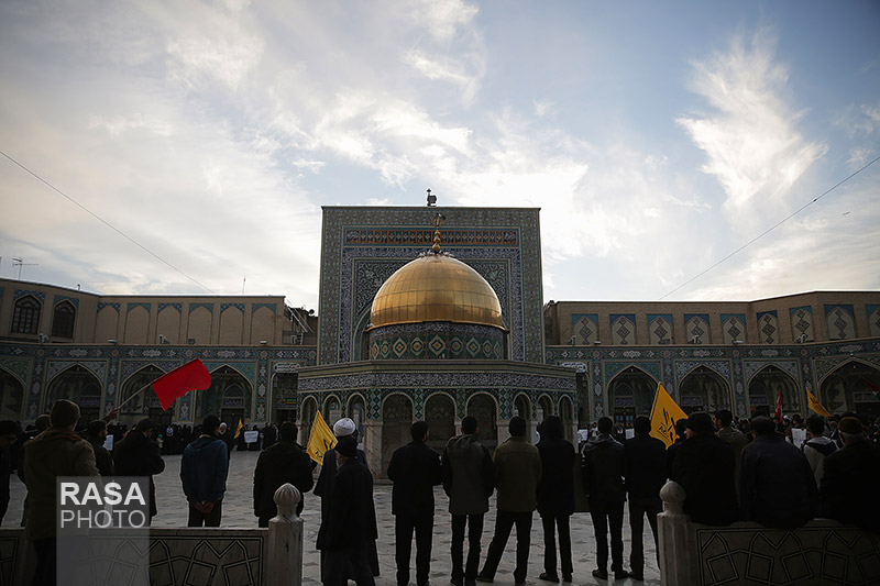 حلقه انسانی دور نماد «قدس» در حرم مطهر رضوی