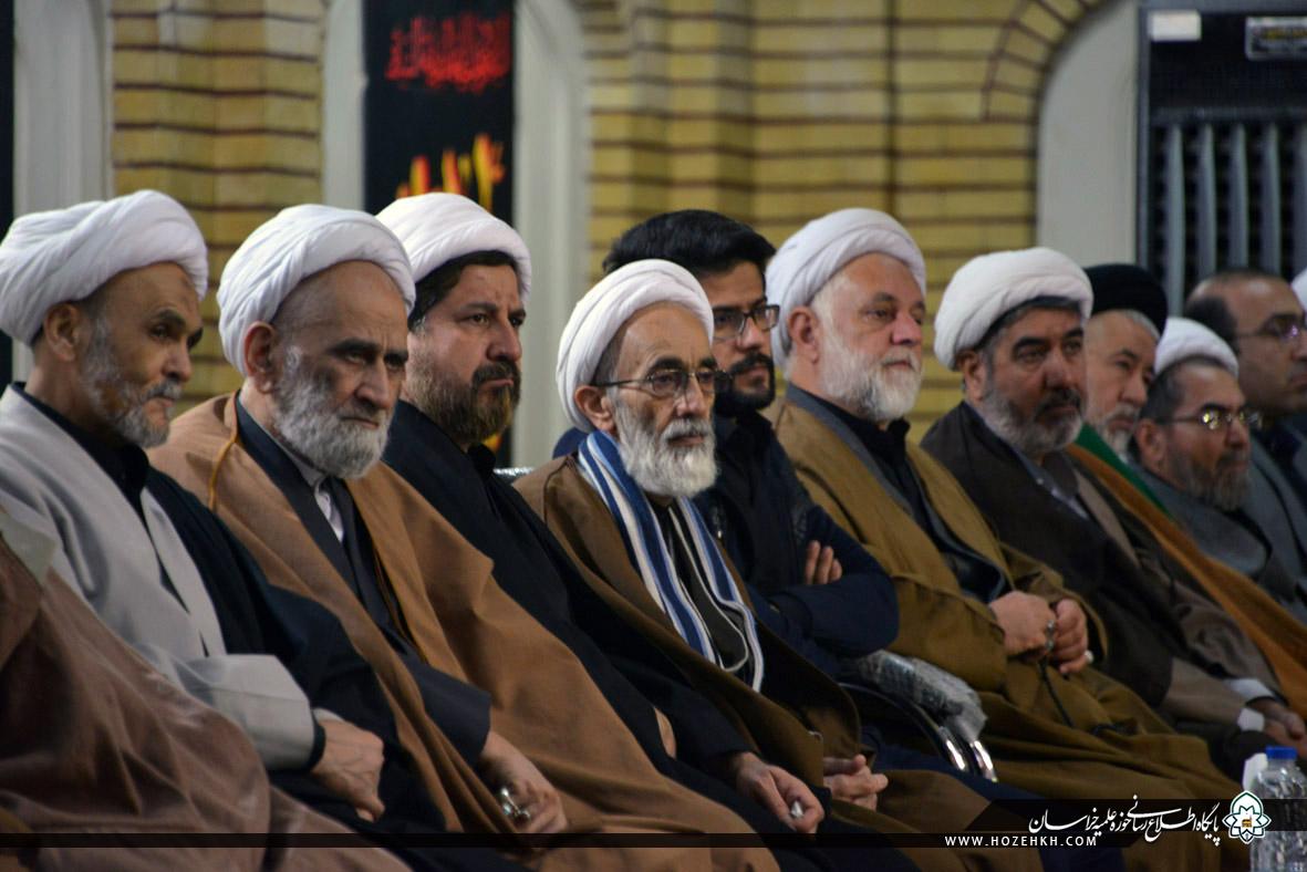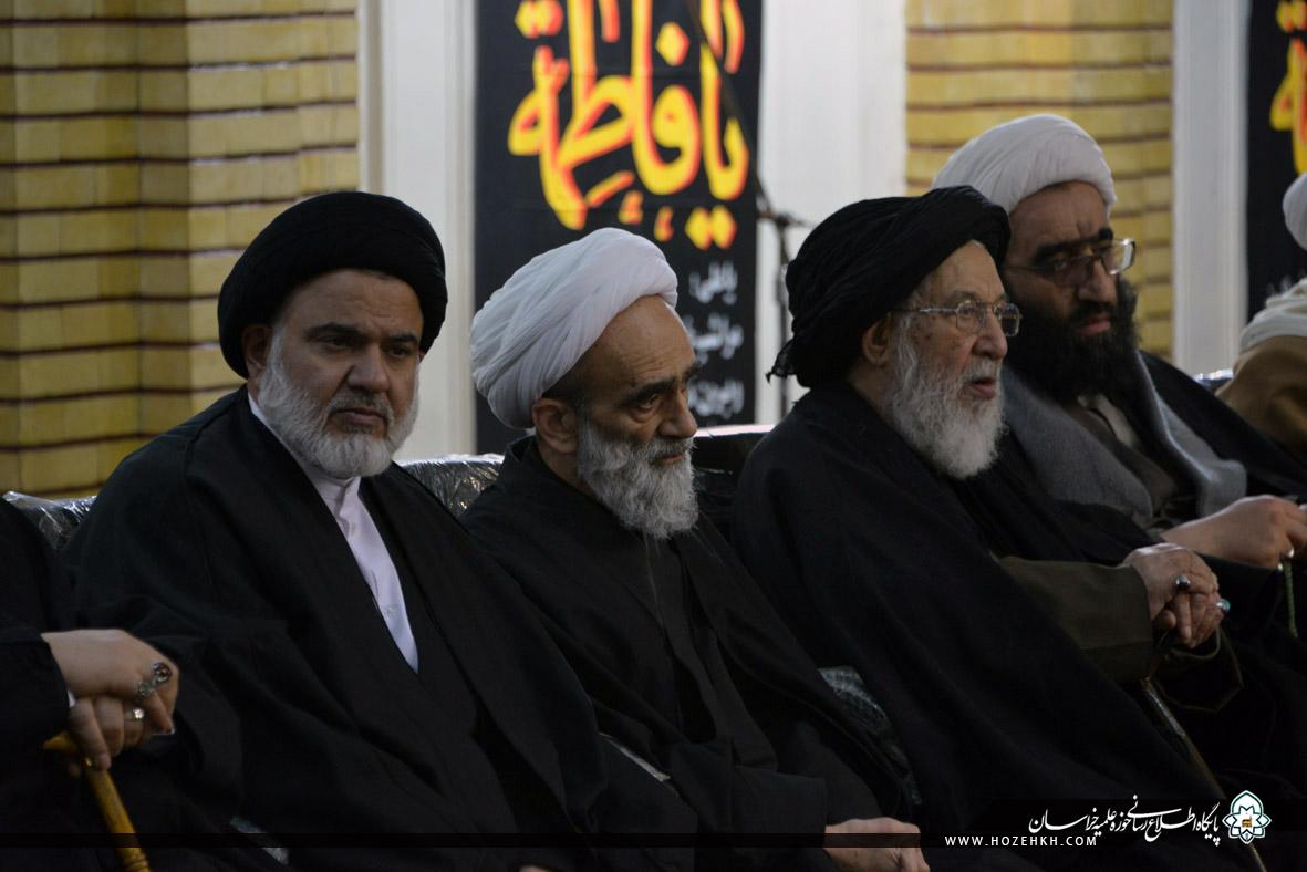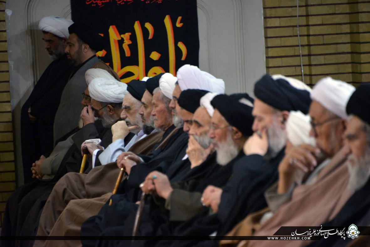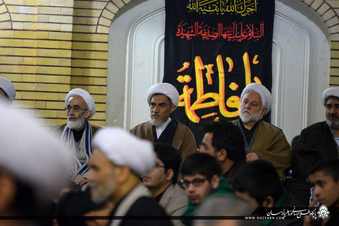 شبکه اجتهاد: مراسم عزاداری سالروز شهادت حضرت صدیقه طاهره سلام الله علیها از سوی شورای عالی و مدیریت حوزه علمیه خراسان، با حضور حضرات آیات، علما، اساتید و روحانیان و با سخنرانی آیتالله سید احمد خاتمی در مدرسه علمیه آیتالله خویی(ره) مشهد برگزار شد. پس از عزاداری علما و اساتید، روحانیون حوزه علمیه خراسان به همراه اجتماع عزاداران فاطمی برای عرض تسلیت به ساحت حضرت رضا (علیهالسلام) به سمت حرم مطهر رضوی مشرف شدند.