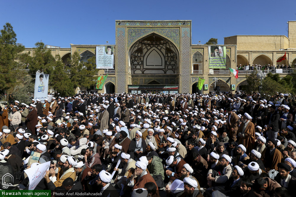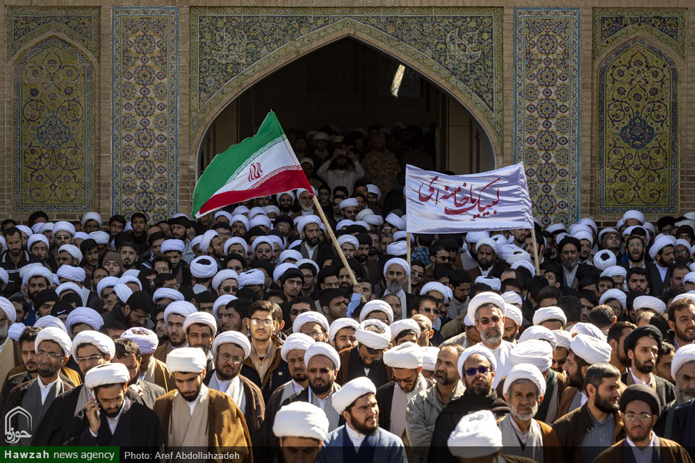 شبکه اجتهاد: اجتماع عظیم علما، اساتید و طلاب حوزه علمیه قم در لبیک به بیانیه گام دوم انقلاب اسلامی با حضور خیل کثیری از طلاب، روحانیون و فضلای حوزه علمیه قم در مدرسه فیضیه برگزار شد. آیتالله سید احمد خاتمی در سخنانی در این اجتماع بیان کرد: در این گام مقدس بزرگان، اساتید، مراجع عظام تقلید و اعاظم پیشگامند و آیات عظام مکارم شیرازی و نوری همدانی در رابطه با بیانیه دوم انقلاب واکنش مثبتی نشان دادند که بدین معناست که دشمنان آرزوی جدایی حوزه را از انقلاب و ولایت به گور خواهند برد. زمانی که رهبر انقلاب این پیام را صادر کردند، جامعه مدرسین کمیتهای تشکیل داد تا مشخص شود که حوزه چه کمکی میتواند به تحقق این بیانیه انجام دهد. ما حوزویان یک مجموعه هستیم که رهبر انقلاب در رأس این مجموعه قرار دارند؛ مراجع عظام تقلید جمعی را برای شورای عالی منصوب کردهاند و من به عنوان یکی از اعضای این شورا شهادت میدهم که همه اعضا تضمین کردیم که یک ریالی بابت این کار نگیریم و تمام دغدغه بر اجرایی شدن آرمانهای انقلاب است.