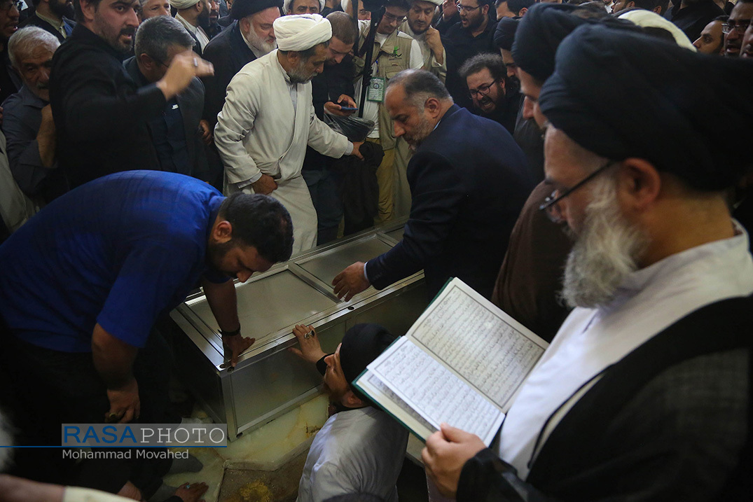 پیکر مطهر ایشان از مسجد امام حسن عسکری(ع) به سوی حرم مطهر بانوی کرامت (س) توسط علما، اساتید و طلاب حوزه علمیه و همچنین عموم مردم شریف قم تشییع شد و پس از اقامه نماز میت توسط توسط آیتالله سید حسین حسینی شاهرودی پیکر ایشان در حرم مطهر حضرت فاطمه معصومه (س) به خاک سپرده شد.