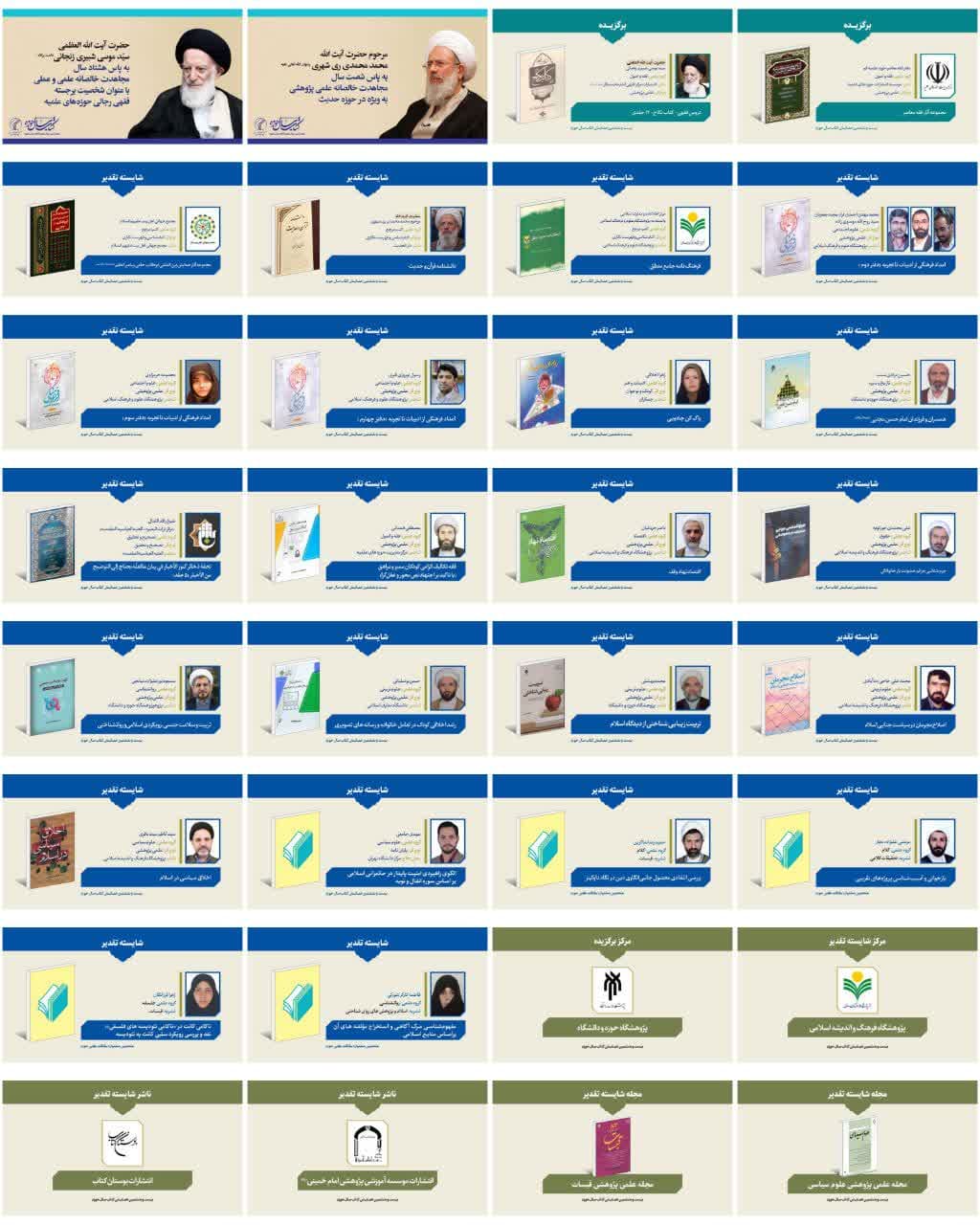 در بخش کتب حوزوی، دو اثر ۱۲ جلدی درس نکاح از دروس فقهی آیتالله سید موسی شبیری زنجانی و مجموعه آثار دفتر فقه معاصر حوزههای علمیه کشور به عنوان آثار برگزیده این دوره انتخاب شد.
