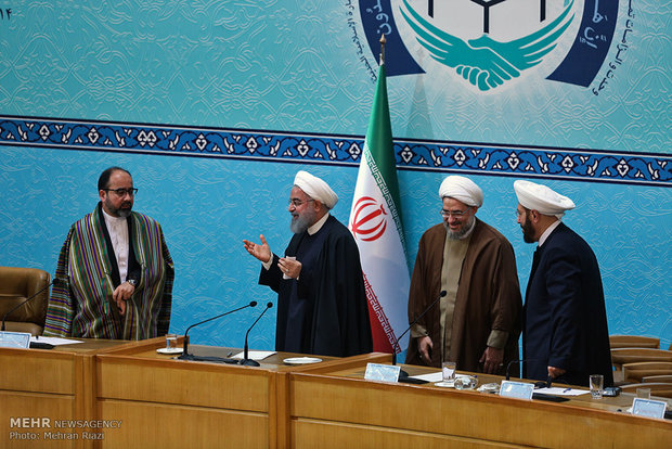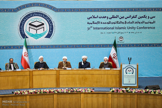 تصاویری از مراسم افتتاحیه سی و یکمین کنفرانس وحدت اسلامی 1396-09-15 شبکه اجتهاد: مراسم افتتاحیه سی و یکمین کنفرانس وحدت اسلامی صبح سه شنبه با حضور حجتالاسلام والمسلمین حسن روحانی رئیس جمهور برگزار شد.