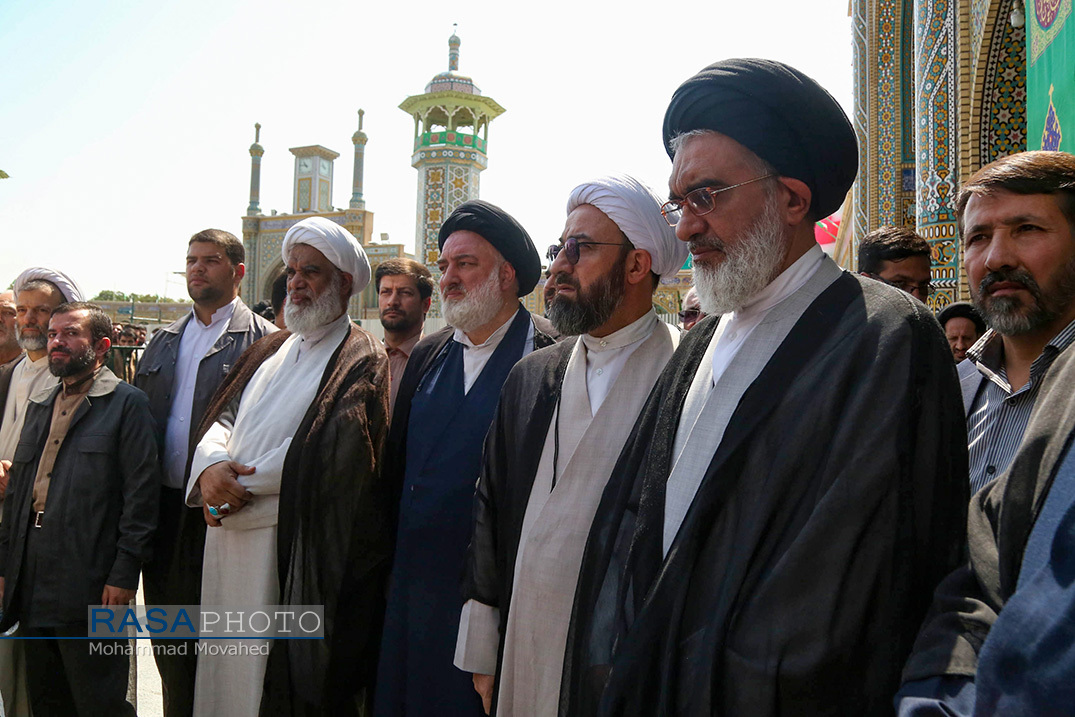 آیات سید عبدالهادی حسینی شاهرودی، کعبی، خاتمی، شب زنده دار، سعیدی و موسوی جزایری در این مراسم حضور داشتند. همچنین نمایندگان بیوت مراجع، اعضای مجلس خبرگان و جامعه مدرسین حوزه علمیه قم نیز در این مراسم حضور یافتند.
