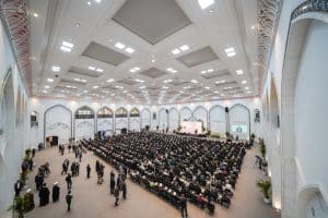 در پایان این مراسم، از موسوعه علمی ۴۰ جلدی محقق نائینی رونمایی شد که حاصل دو سال تلاش حوزه علمیه قم و مجتمع علمی امام حسین(علیه السلام) است. همچنین مدیر آستان مقدس علوی سید عیسی خرسان، اقدام به اهدای پرچم مولای متقیان حضرت امیرالمؤمنین (علیه السلام) به حوزه علمیه شهر قم مقدس نمود که این پرچم به استاد علیرضا اعرافی، مدیر حوزههای علمیه و علمای برجسته حاضر در آنجا، تحویل داده شد.