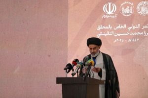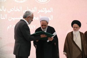استاد شیخ جعفر نائینی؛ نوه مرحوم آیتالله میرزای نائینی به نمایندگی از خاندان نائینی، از عنایات و رهنمودهای ارزشمند حضرت آیتالله سیستانی، در حمایت از برگزاری این کنگره در عراق قدردانی کرد و همچنین از مسئولان عتبات مقدسه علوی و حسینی (ع) و تمامی حاضران بهخاطر مشارکت در این رویداد مهم علمی تشکر نمود.